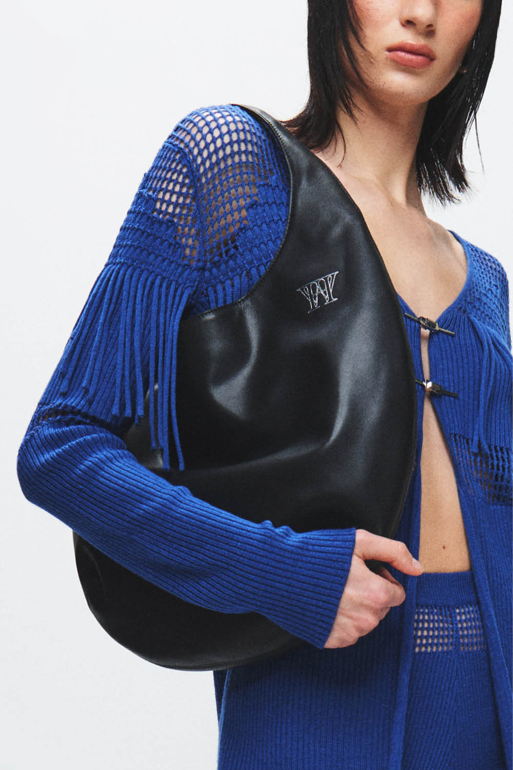 New York moves fast—your bag should keep pace. The Baguette Saddle Bag is built for days that start with coffee runs and back-to-back meetings, only to spill into rooftop drinks. A supple leather strap keeps things polished by day, while silver-tone chains transform it into a draped crossbody as the city lights flicker on. Adaptable and effortless—structured when needed, relaxed when the night calls.