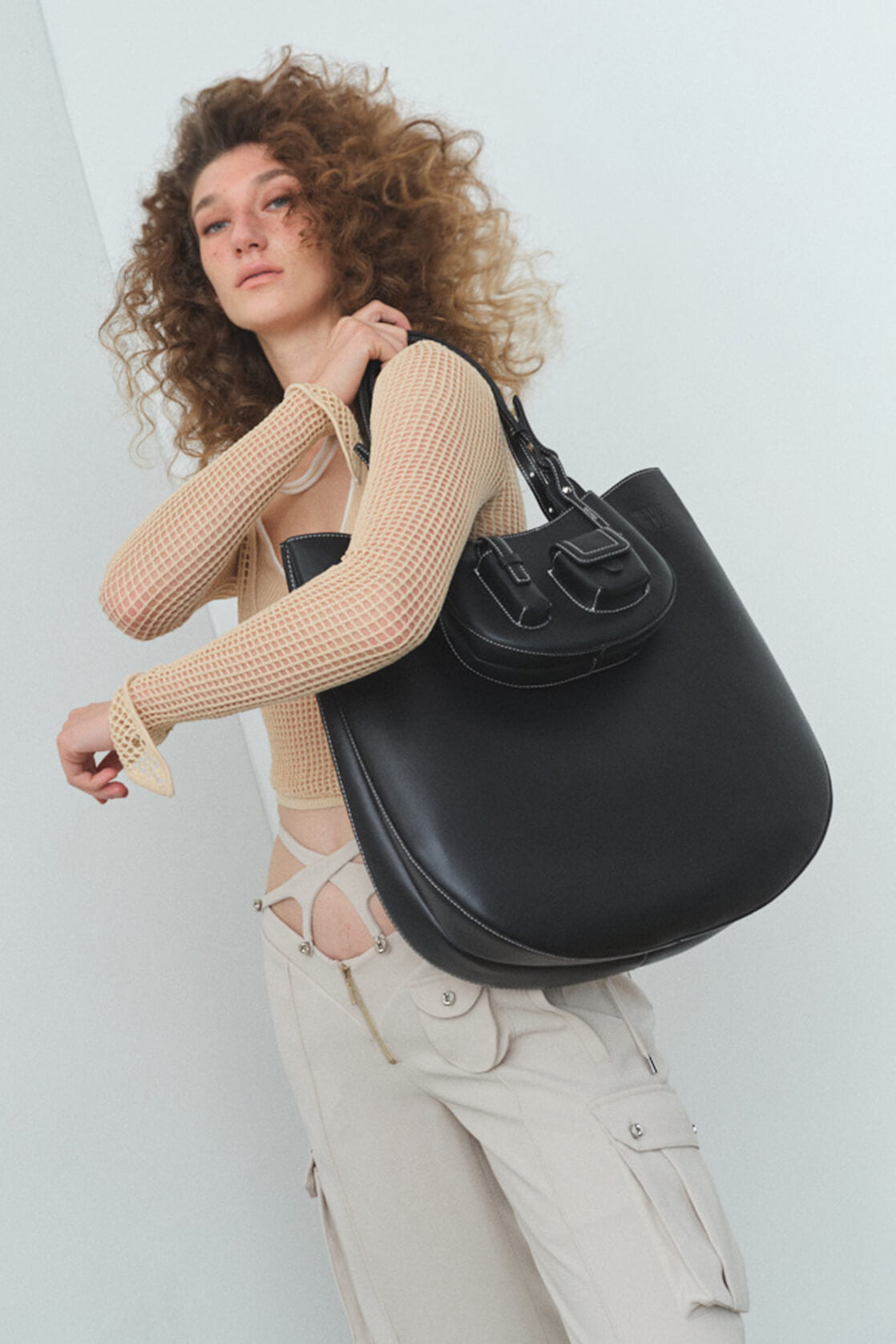 The things you need most are often the ones that disappear—a hair tie, a lipstick, a single bobby pin. This Pocket Saddle Bag keeps them close with sculptural front pockets that turn essentials into second nature. Because the smallest details shape the sharpest looks.
