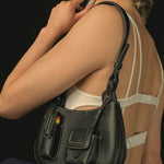 New York moves fast—your bag should keep pace. The Baguette Saddle Bag is built for days that start with coffee runs and back-to-back meetings, only to spill into rooftop drinks. A supple leather strap keeps things polished by day, while silver-tone chains transform it into a draped crossbody as the city lights flicker on. Adaptable and effortless—structured when needed, relaxed when the night calls.