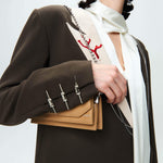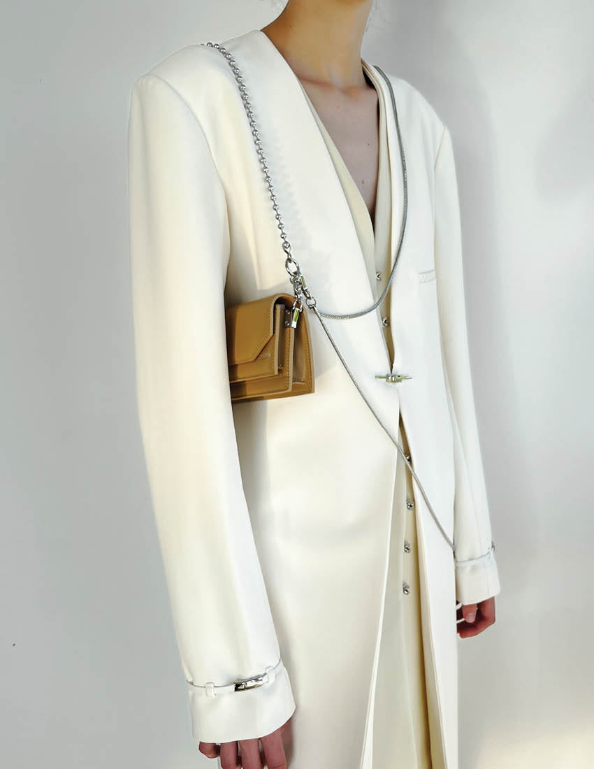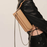 Your days don’t stand still—neither should your bag. The baguette shoulder bag shifts seamlessly from business to after-hours. Supple leather straps by day, silver-tone chains by night—polished yet effortless, structured yet free.