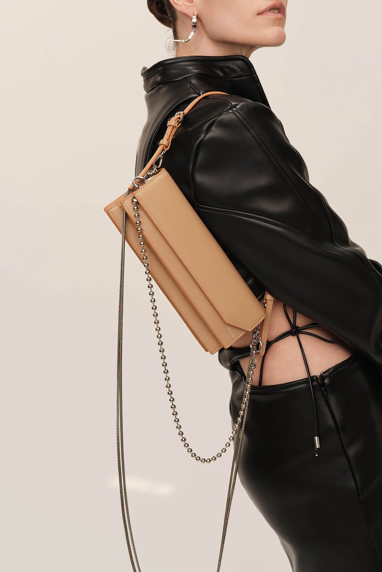 New York moves fast—your bag should keep pace. The Baguette Saddle Bag is built for days that start with coffee runs and back-to-back meetings, only to spill into rooftop drinks. A supple leather strap keeps things polished by day, while silver-tone chains transform it into a draped crossbody as the city lights flicker on. Adaptable and effortless—structured when needed, relaxed when the night calls.