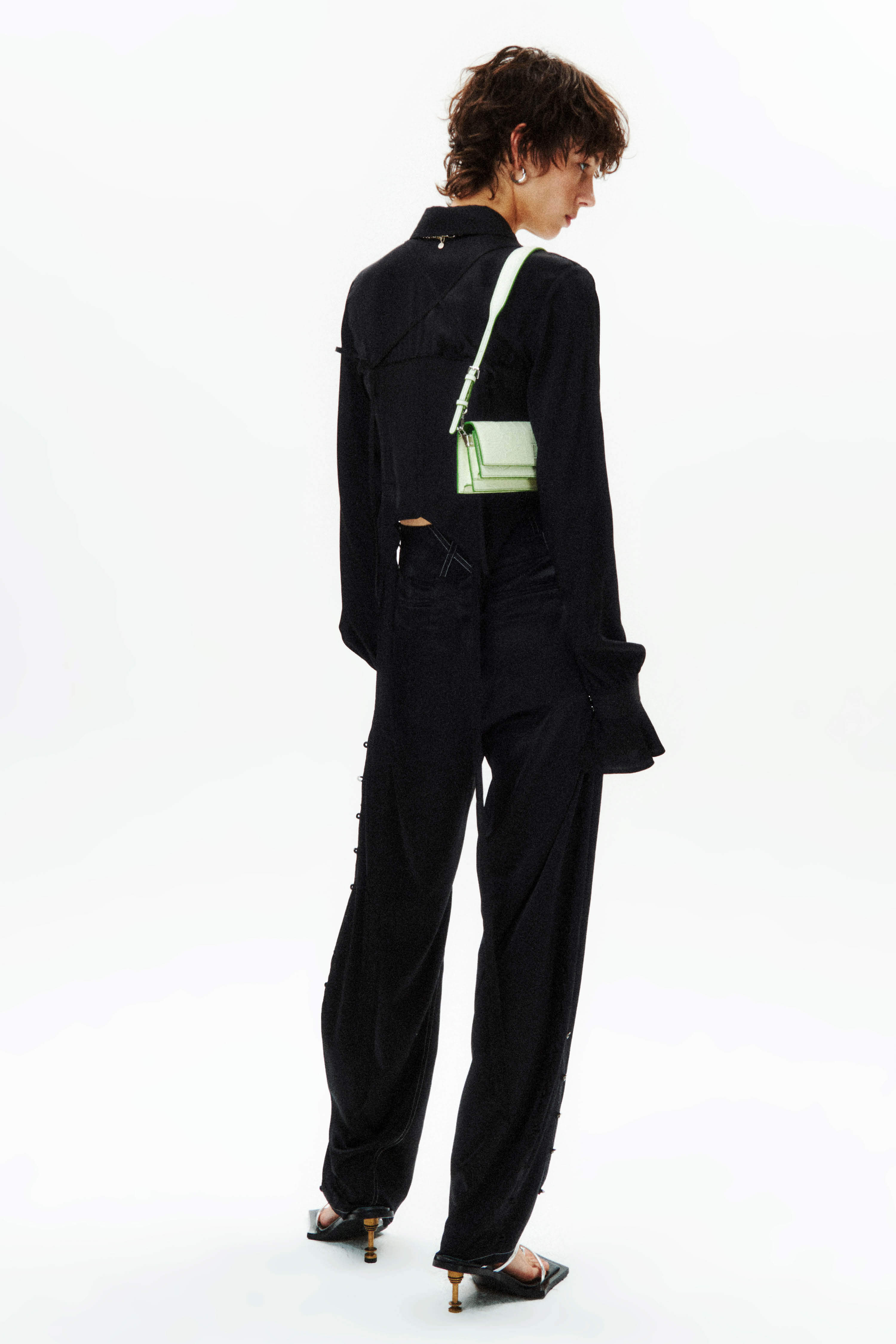 New York moves fast—your bag should keep pace. The Baguette Saddle Bag is built for days that start with coffee runs and back-to-back meetings, only to spill into rooftop drinks. A supple leather strap keeps things polished by day, while silver-tone chains transform it into a draped crossbody as the city lights flicker on. Adaptable and effortless—structured when needed, relaxed when the night calls.