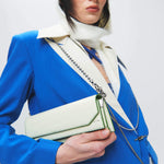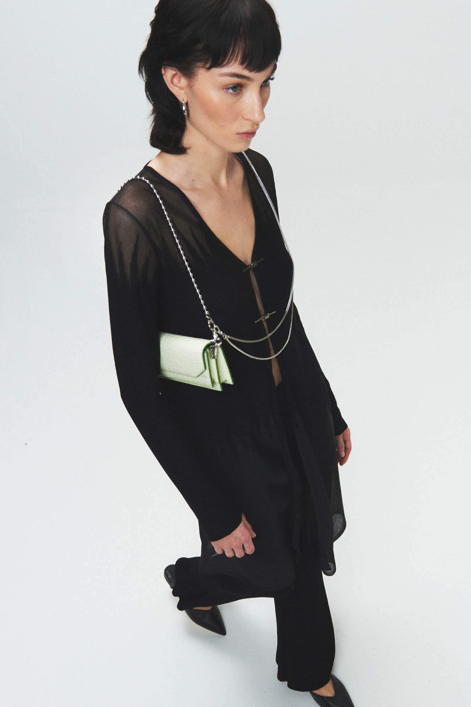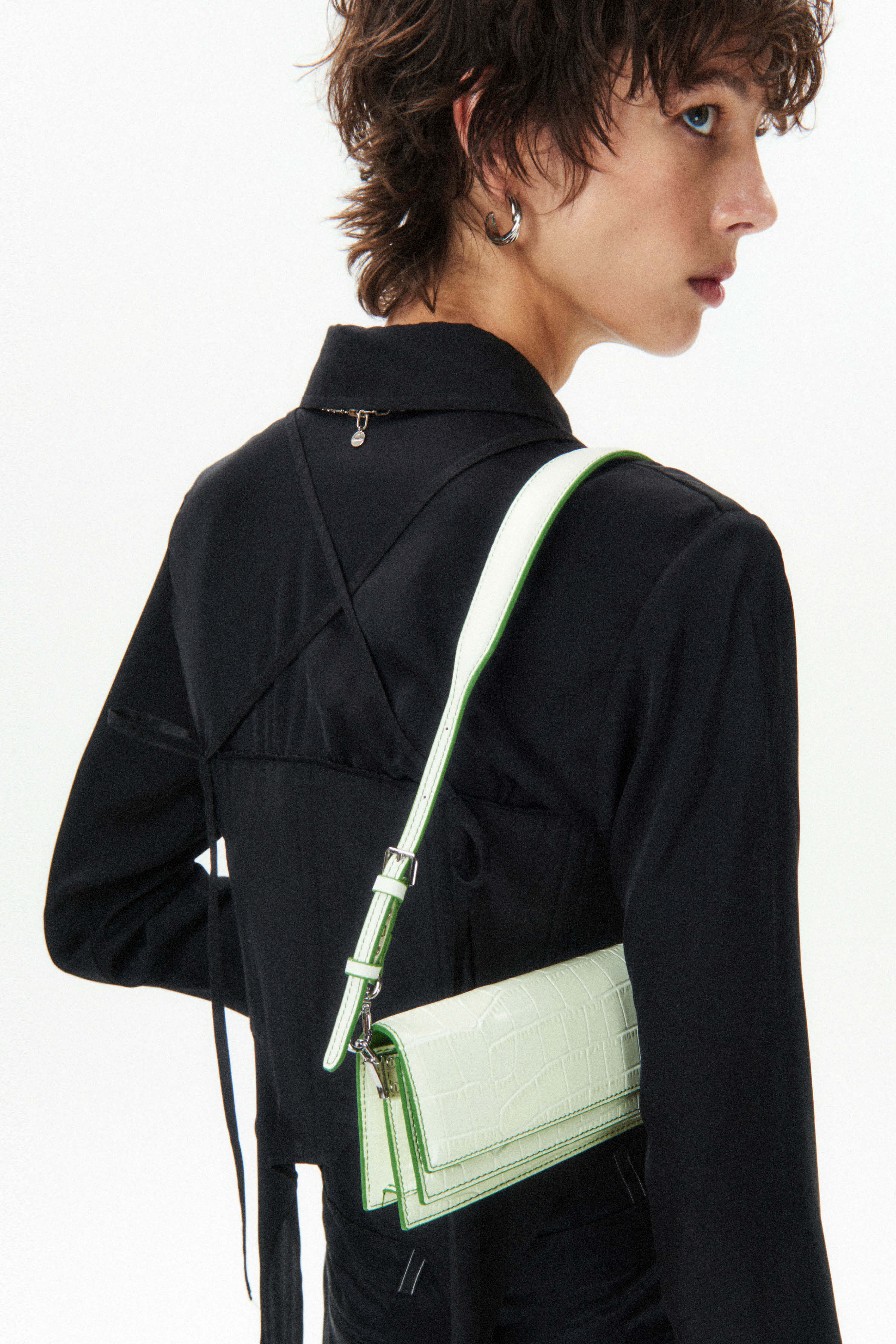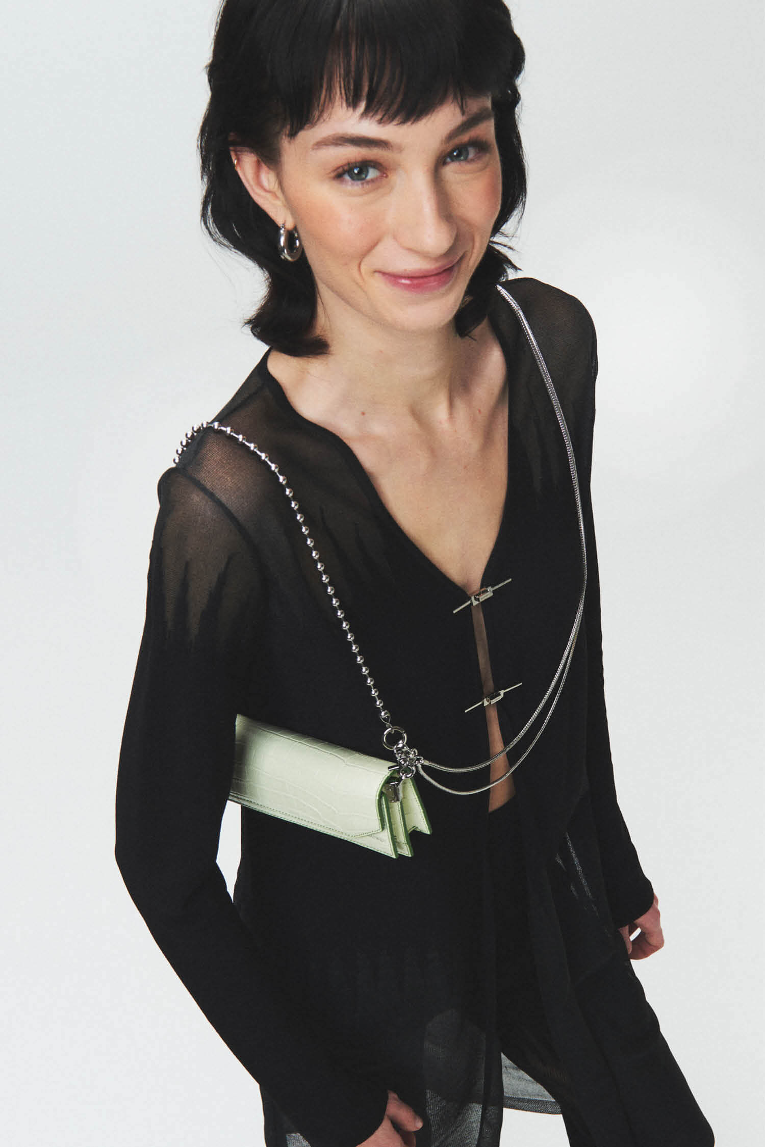 Your days don’t stand still—neither should your bag. The baguette shoulder bag shifts seamlessly from business to after-hours. Supple leather straps by day, silver-tone chains by night—polished yet effortless, structured yet free.