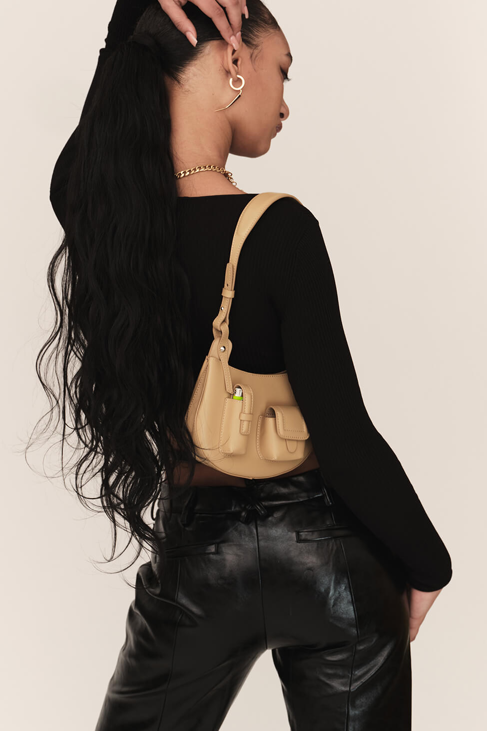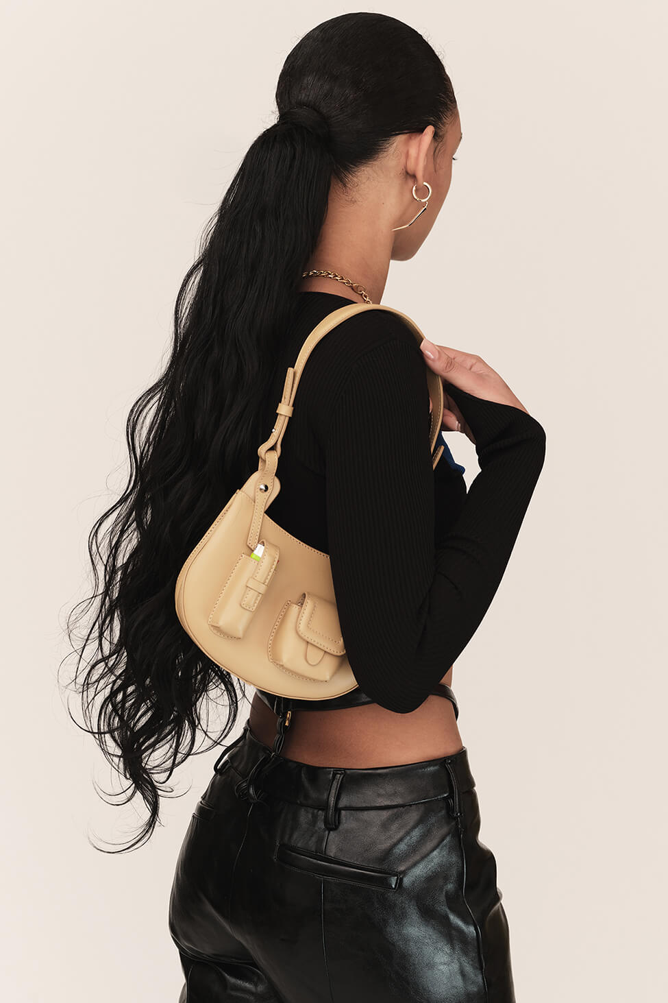 The things you need most are often the ones that disappear—a hair tie, a lipstick, a single bobby pin. This Pocket Saddle Bag keeps them close with sculptural front pockets that turn essentials into second nature. Because the smallest details shape the sharpest looks.