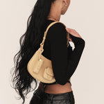 New York moves fast—your bag should keep pace. The Baguette Saddle Bag is built for days that start with coffee runs and back-to-back meetings, only to spill into rooftop drinks. A supple leather strap keeps things polished by day, while silver-tone chains transform it into a draped crossbody as the city lights flicker on. Adaptable and effortless—structured when needed, relaxed when the night calls.