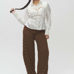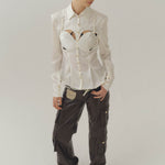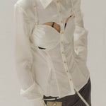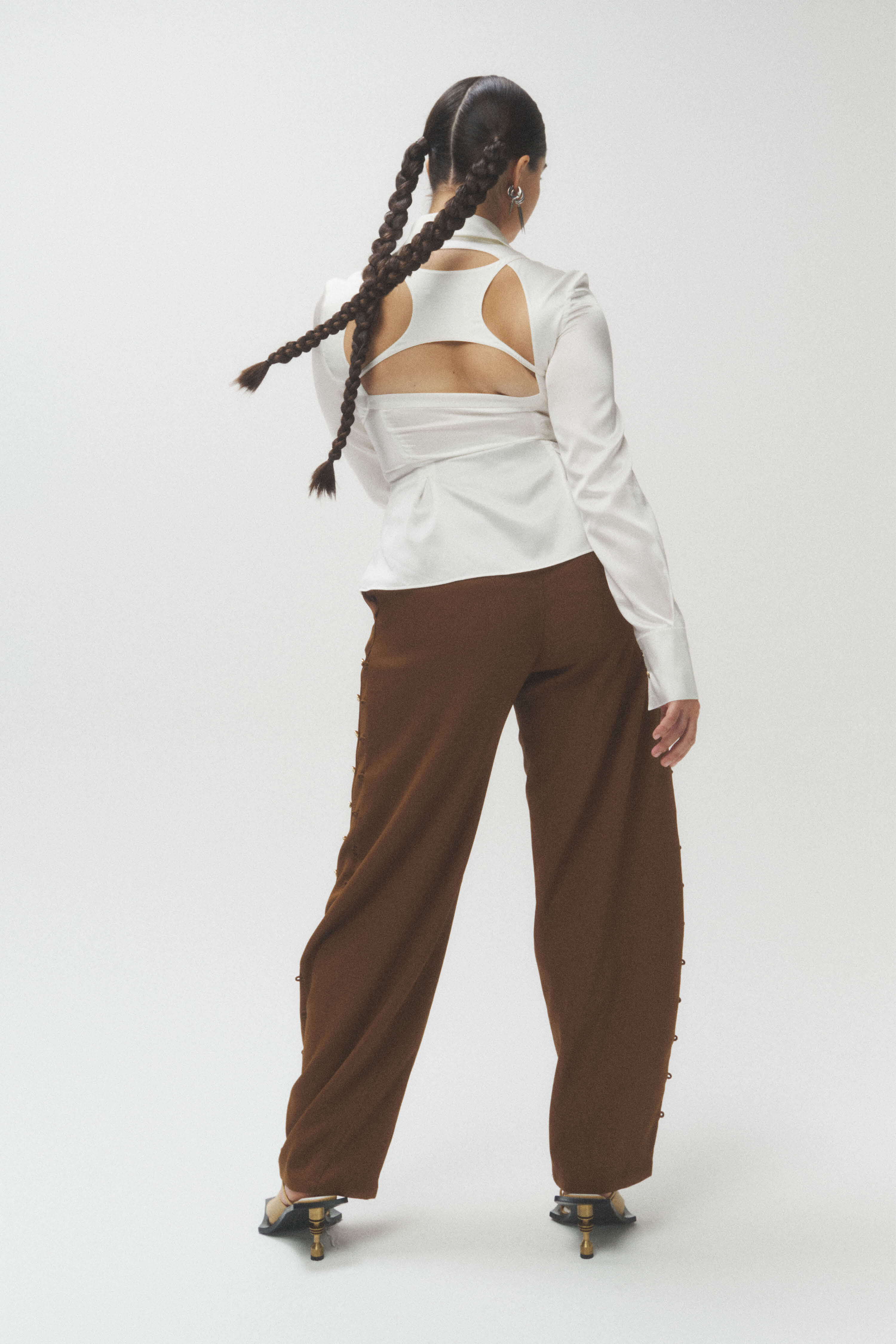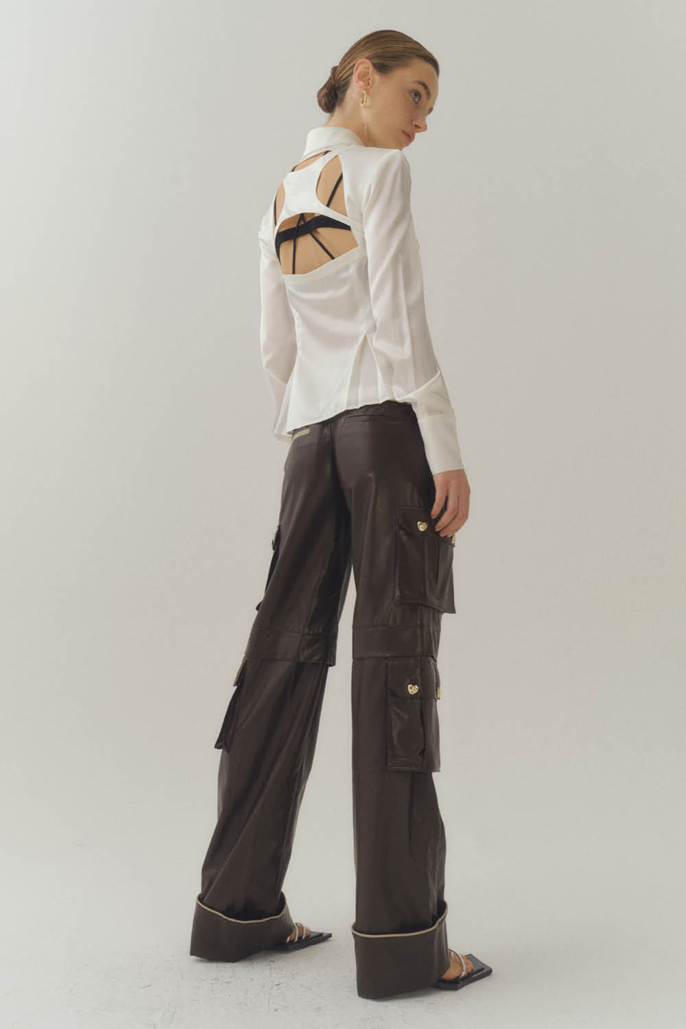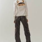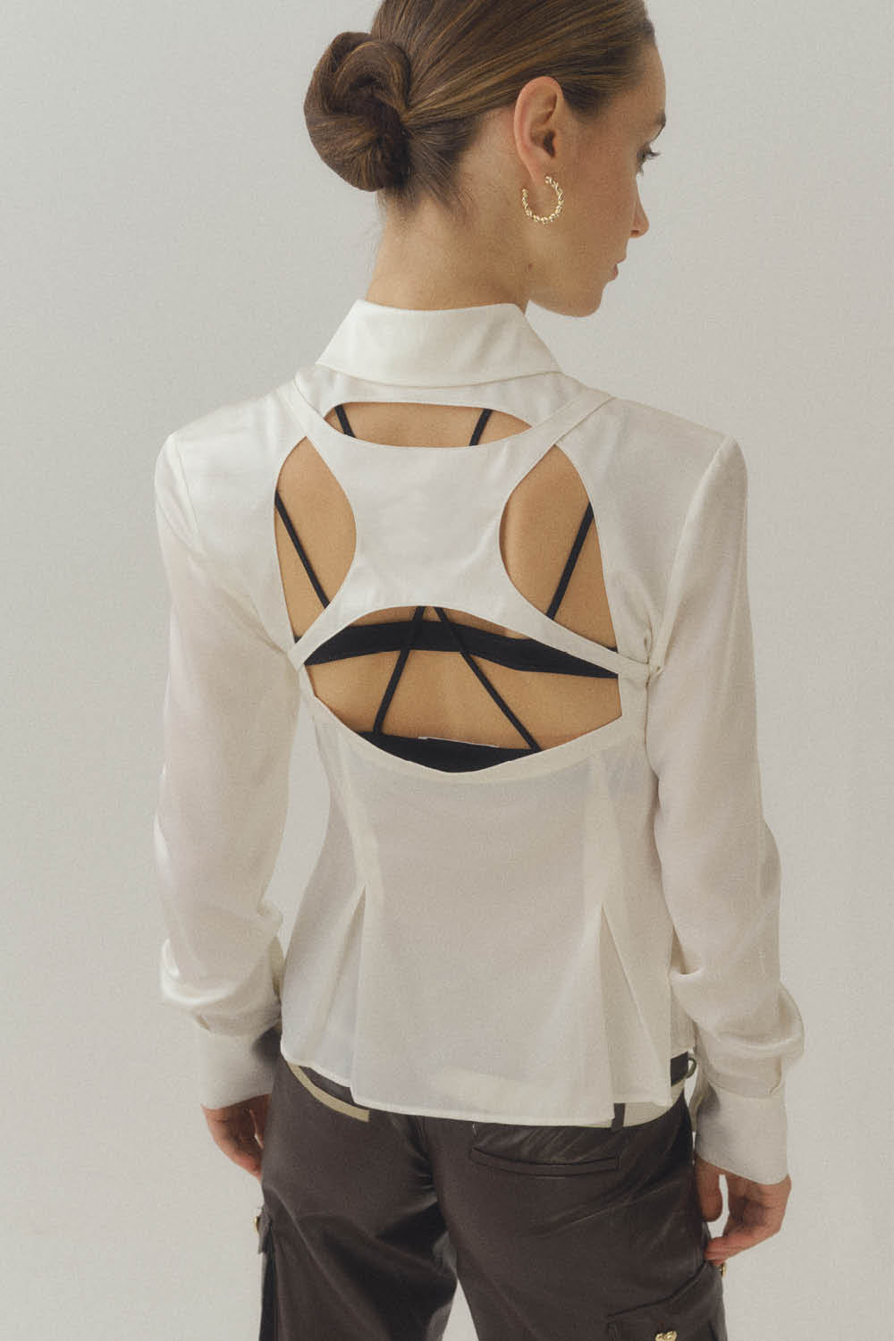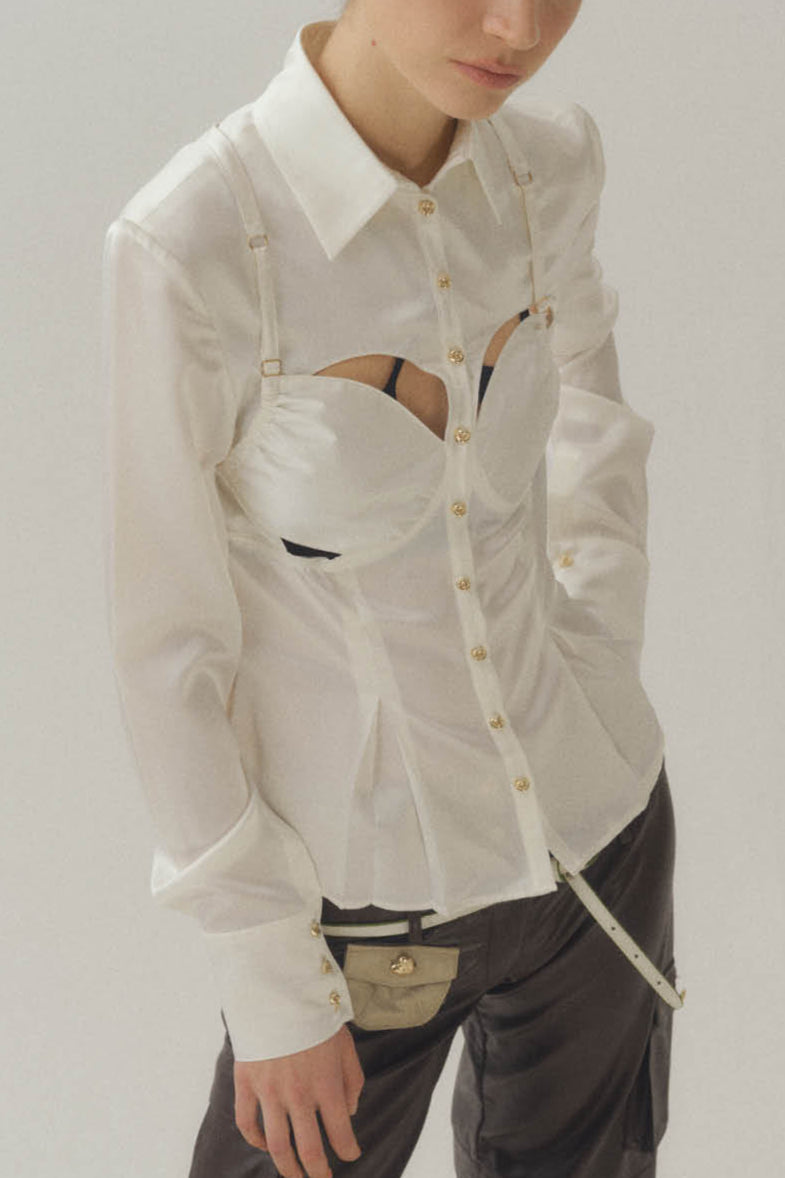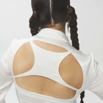 Silk Billboard Open-Back Fitted Blouse-White